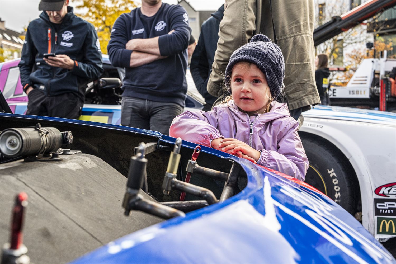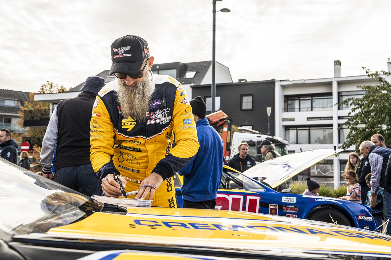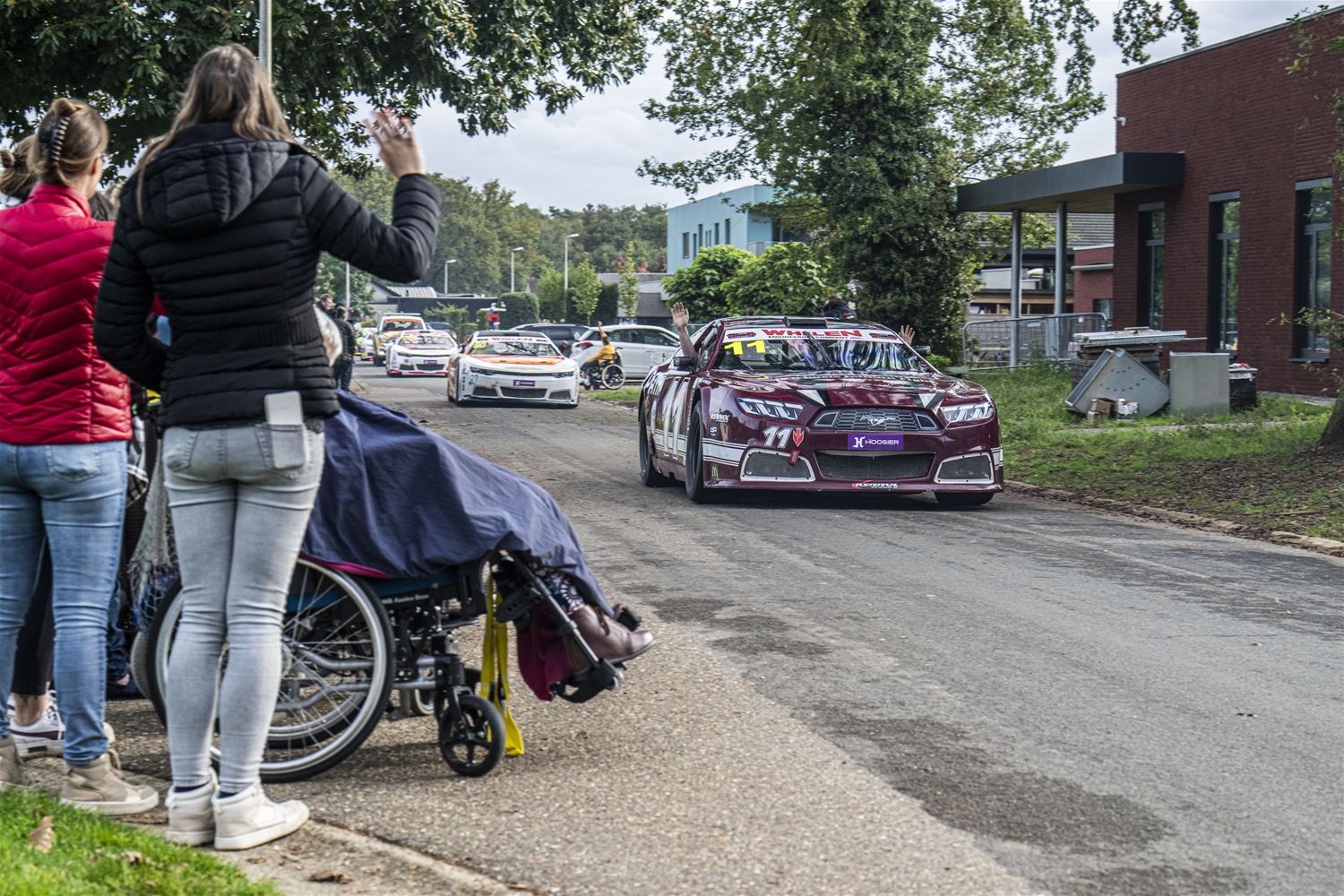 Zolder zat vandaag al helemaal in de NASCAR mood. Enerzijds werden op het circuit volop oefenrondjes gedraaid, ook door de deelnemers aan de seizoensfinale van de Belcar Endurance. Anderzijds vertrokken de NASCAR-bolides voor een parade door Zolder, waarbij het hoogtepunt ongetwijfeld de passage door 't Weyerke was. Heel wat zorggebruikers beleefden daar hun dag van 't jaar. Daarna trok de karavaan door naar 't Heldenplein, waar ruimschoots de tijd was voor foto's, handtekeningen en babbeltjes met de rijders. In de vooravond ging het dan weer onder begeleiding terug naar 't circuit. (foto's DD)83302